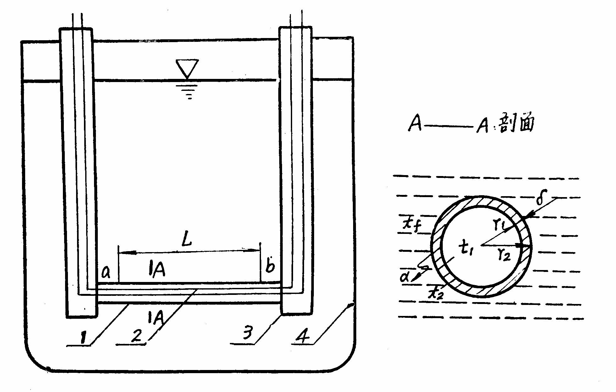 本试验装置所用的试件是不锈钢管,放在饱和温度状态下的蒸馏水中。利用电流流过不锈钢管对其加热,可以认为这样就构成了表面有恒定热流密度的圆管。测定流过不锈钢圆管的电流及其两端的电压降即可准确地确定表面的热流密度。表面温度的变化直接反映出表面放热系数的大小。