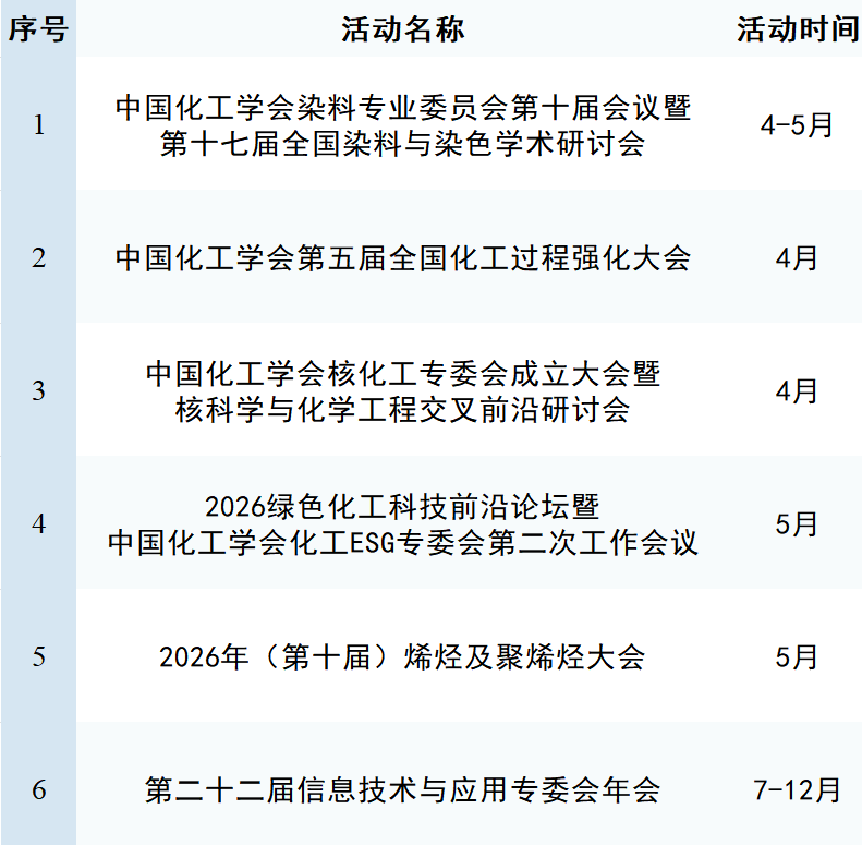 为了进一步培育系列化、高水平、特色化的学术会议,打造具有广泛影响力的学术交流品牌活动矩阵,根据《中国化工学会学术会议管理办法》的相关规定,并经学术指导委员会审定,学会编制并发布了《2026年中国化工学会重点学术及产业交流活动计划》。该计划共包含66项重点活动。