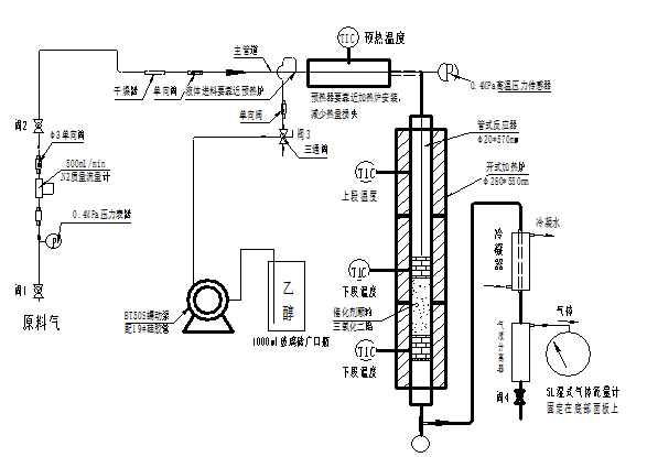 乙醇脱水气固反应器,气相色谱(自备),液体蠕动泵。