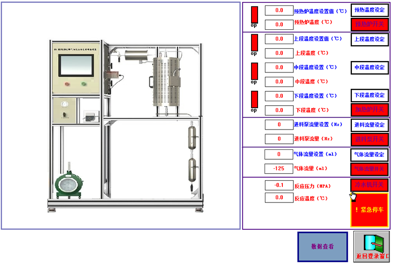 11、实验结束,关闭进料泵,再关闭加热炉和预热器开关。20 min后关闭冷却水。退出软件关闭电脑,然后关闭电控箱面板的触摸屏开关和电源开关,切断实验电源。打扫整理实验操作台。