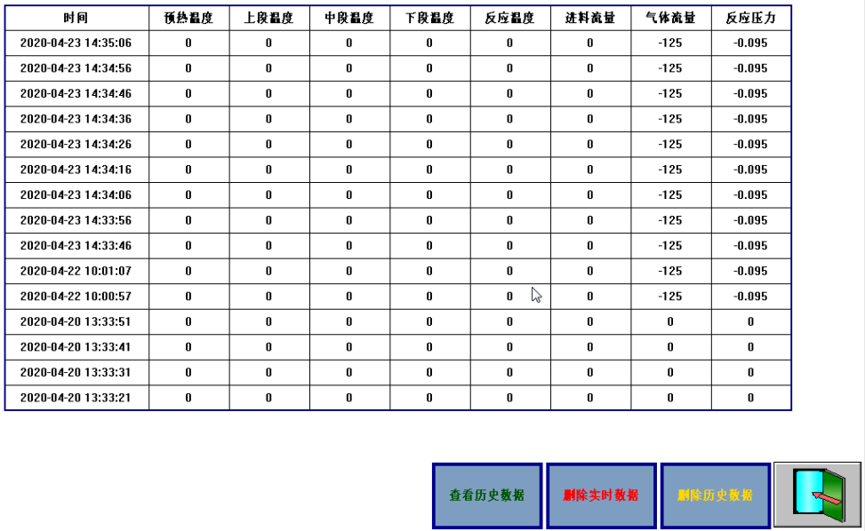 7、 反应进行10 min后,正式开始实验。记录湿式流量计读数,应每隔一定时间记录反应温度、压力等实验条件。或者点击软件界面的采集数据进入采集界面三按时间间距手动采集数据,采集完成点击保存数据,然后返回流程图界面二。