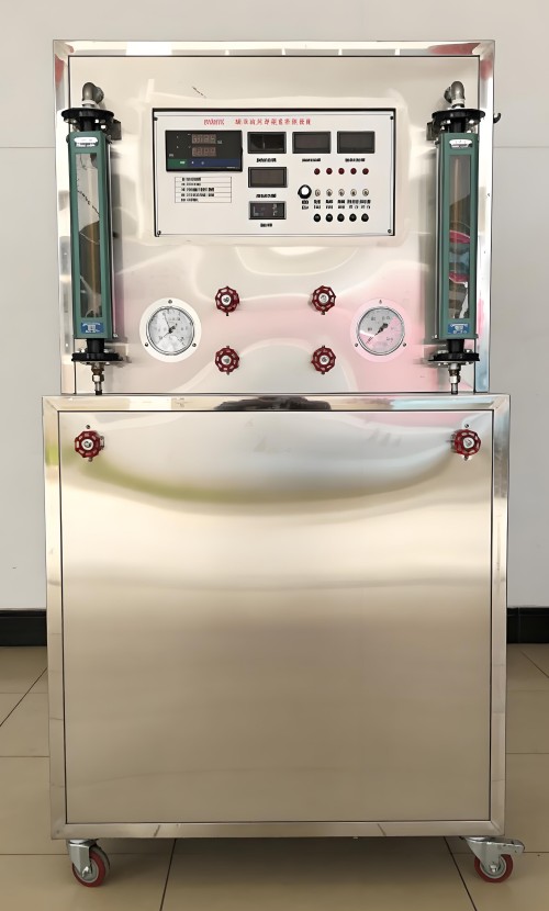 电热加热器水箱,套管换热器,不锈钢冷、热原水箱,转子流量计,顺、逆流管阀,加热由固体调压模块无级调节,由多路巡检仪显示的温度测试系统,不锈钢台架及控制屏等。