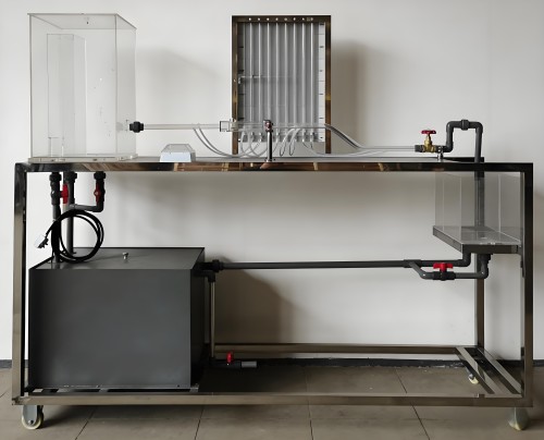 不锈钢移动式实验台、有机玻璃整流稳压水箱、高位突扩突缩粗、细管,阀门、测压传感器、温度传感器DS18B20、实验管道及控制阀门、流量传感器;水箱;防腐潜水泵等。