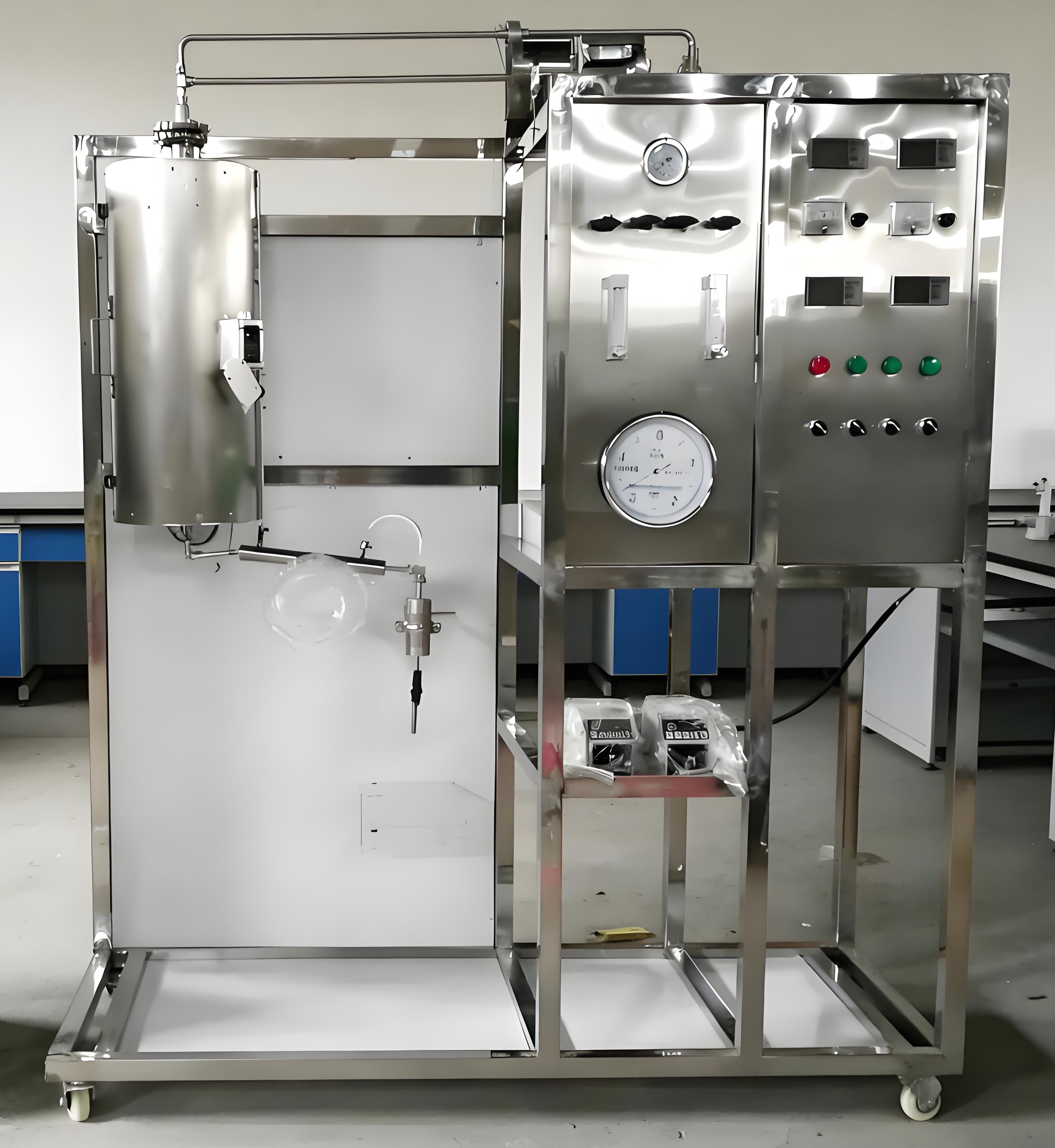 微型隔膜计量泵、气体转子流量计、混合器、汽化器、反应器、气液分离器、冷凝器、温度仪表、压力表、湿式气体流量计、阀门、实验管道、不锈钢框架及控制屏。
