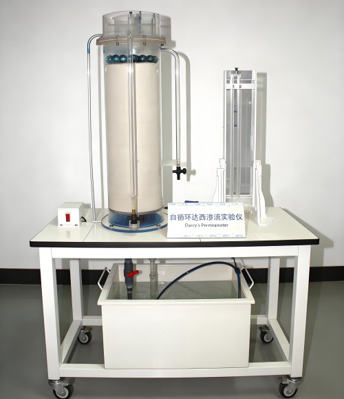 水泵、盛沙圆桶、活动调压盒、溢流板、进水管、滤板、溢流管、有机玻璃管道、铜取样阀、测压管、不锈钢支架。