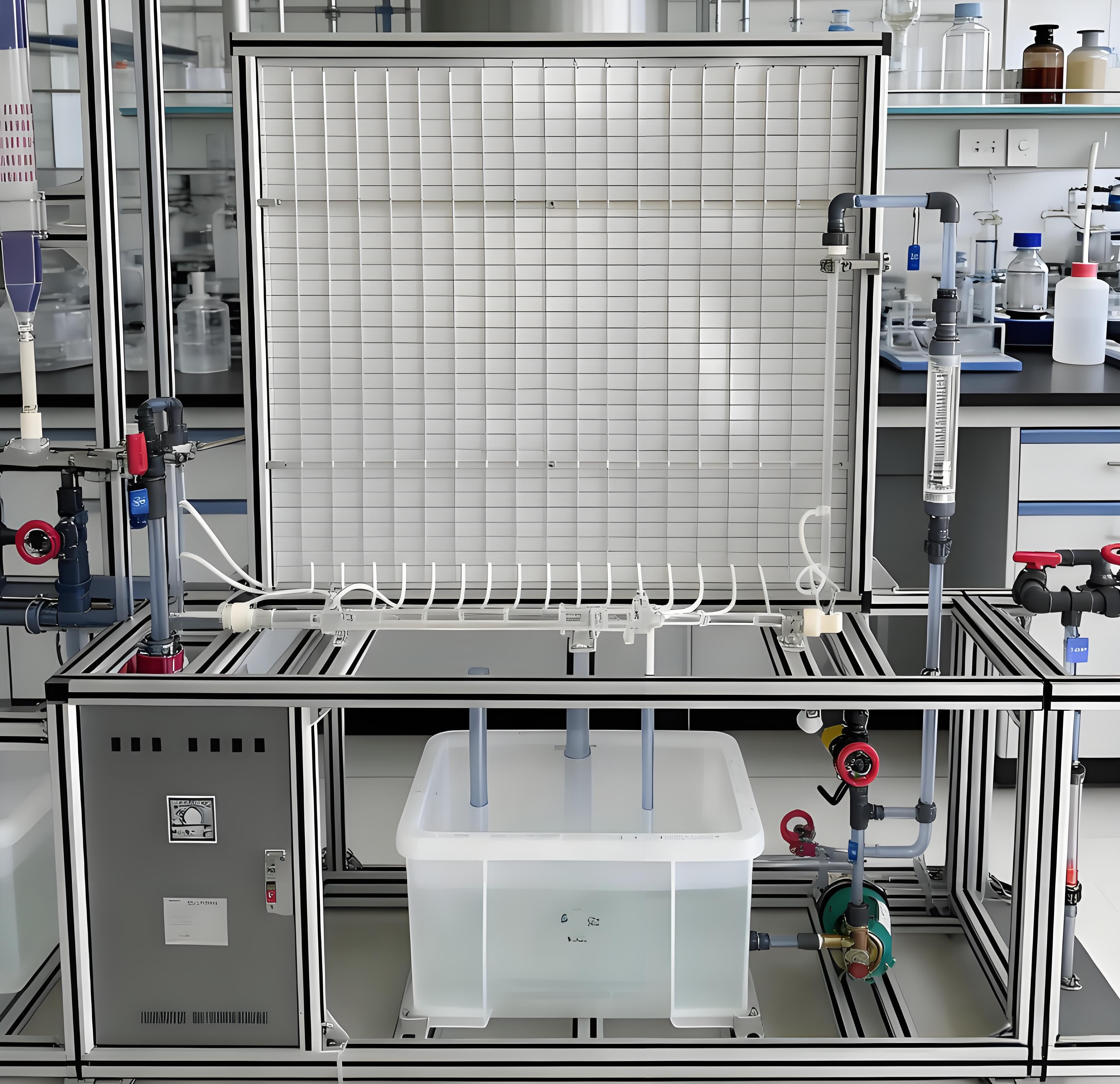 2、演示板:表面喷塑铝板,配水平坐标线。优质有机玻璃测压管,可测定分析各测压点的压力变化情况。304不锈钢低位槽,容积:80L。