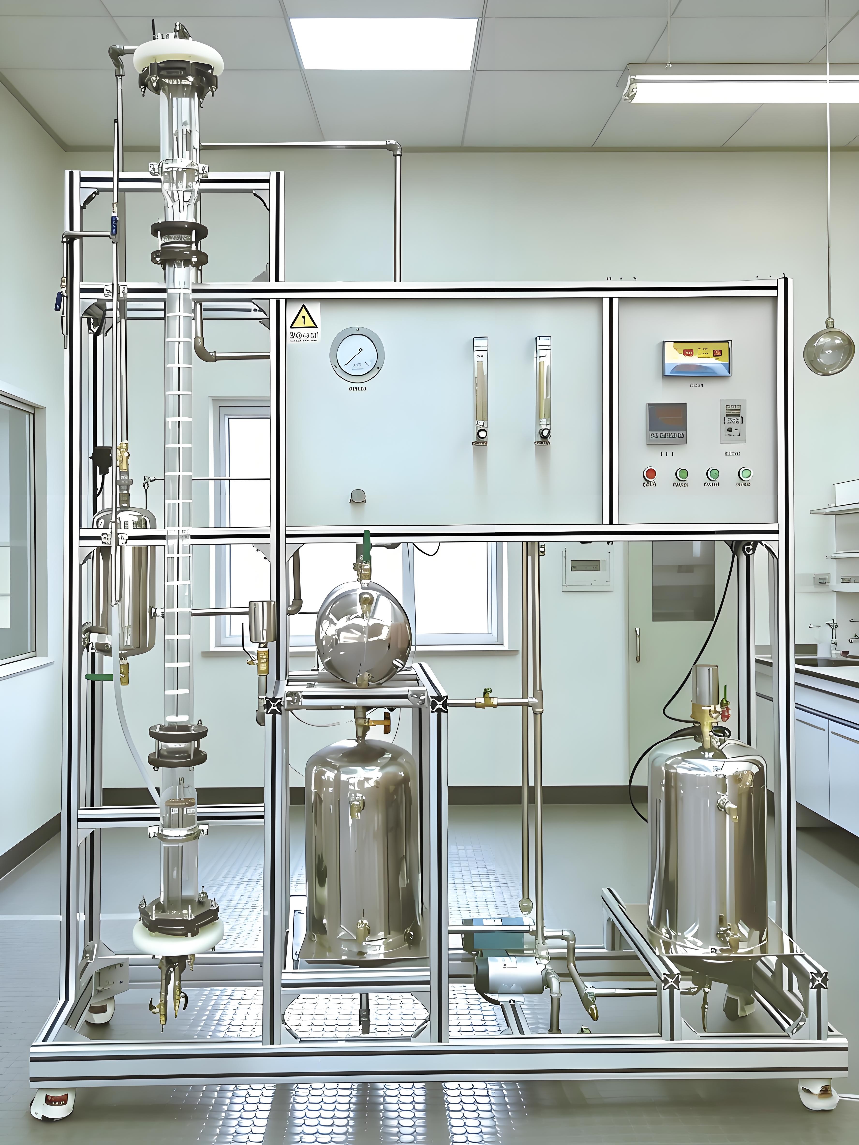 筛板萃取塔、空压机、流量计、脉冲控制器、电磁阀、水泵、填料、储液罐、缓冲罐、数字显示仪表、304不锈钢框架。